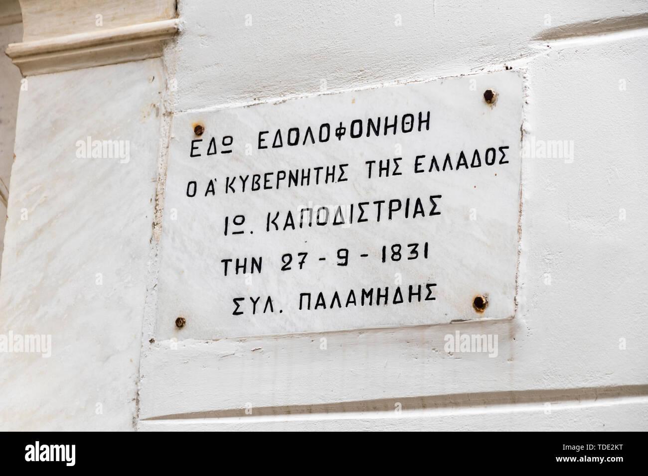 - Site of the assassination of Greece's first president Ioannis Kapodistrias in 1831